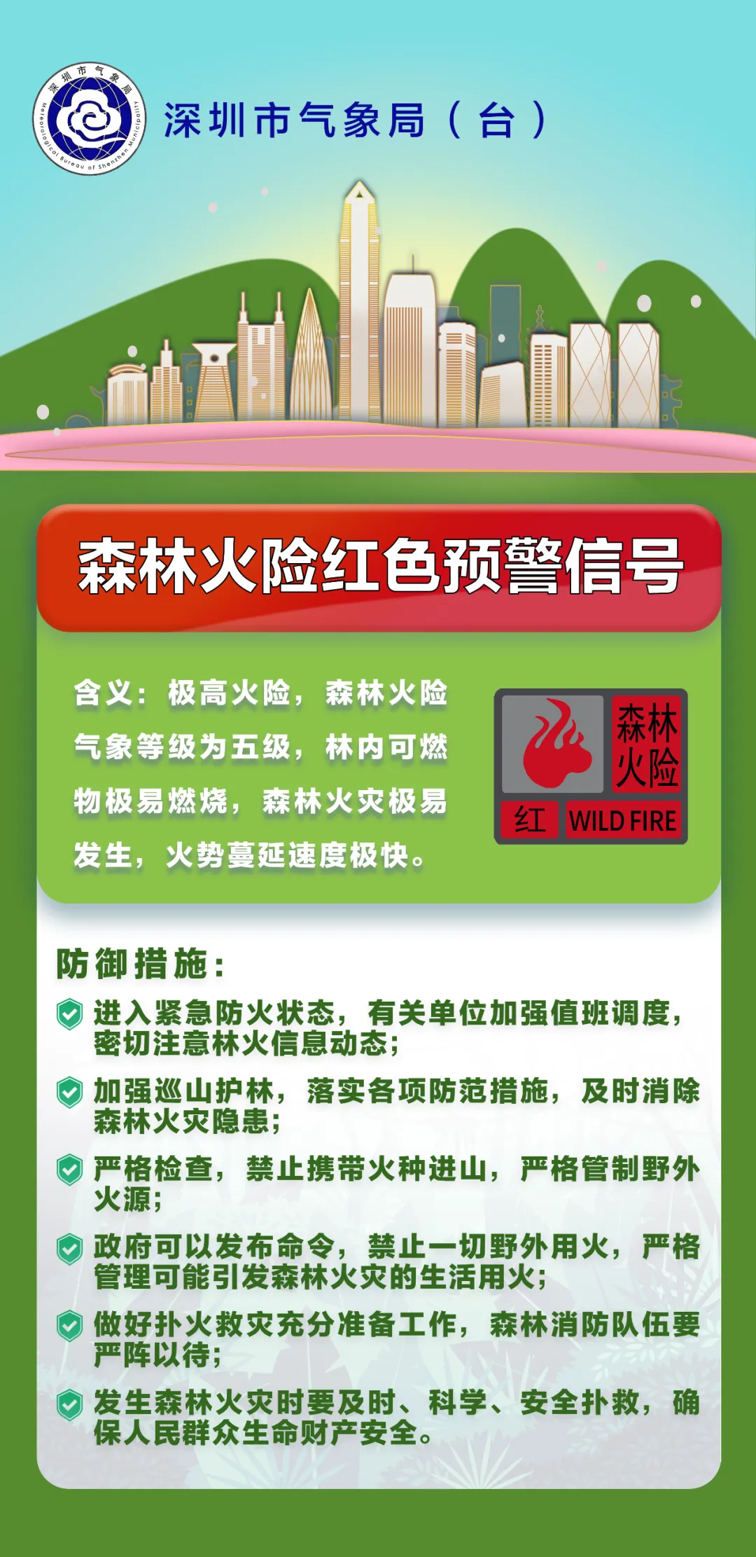 1.目前深圳全市森林火險紅色預警信號仍在生效中,請市民注意森林防火和居家用火用電安全;