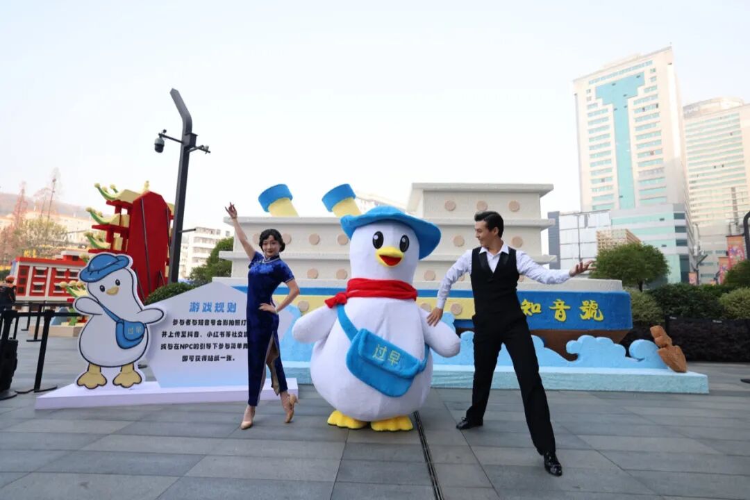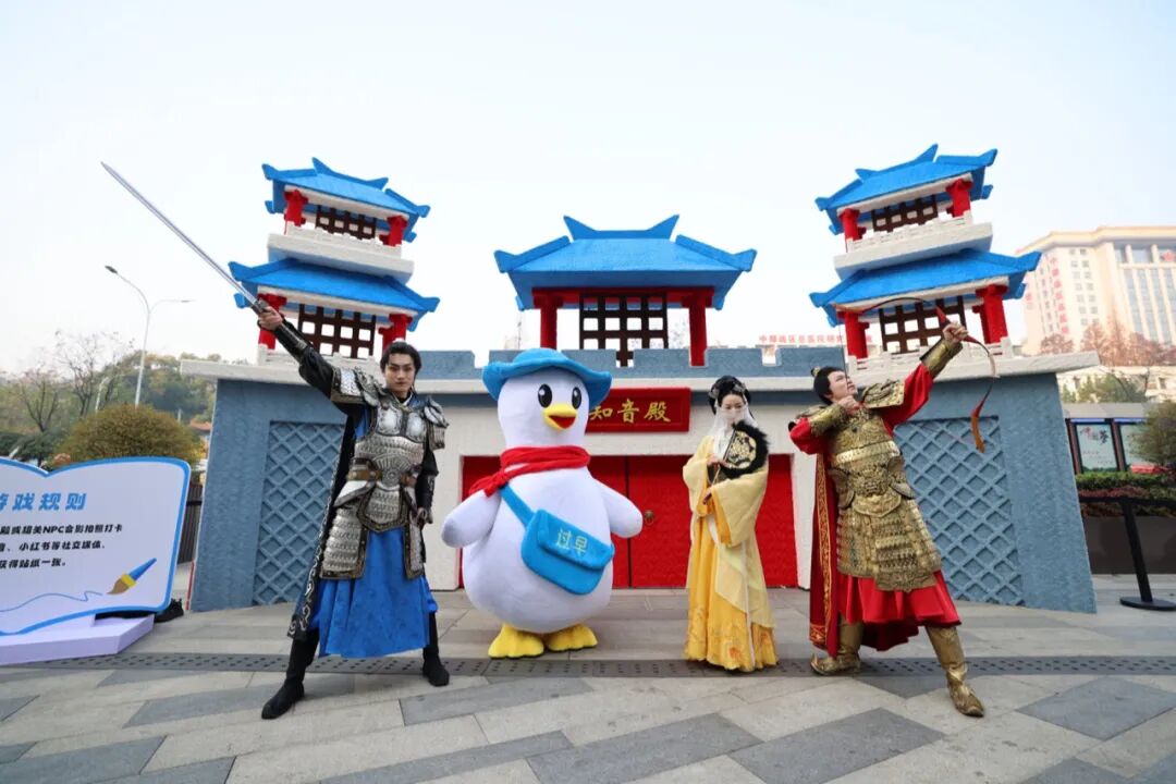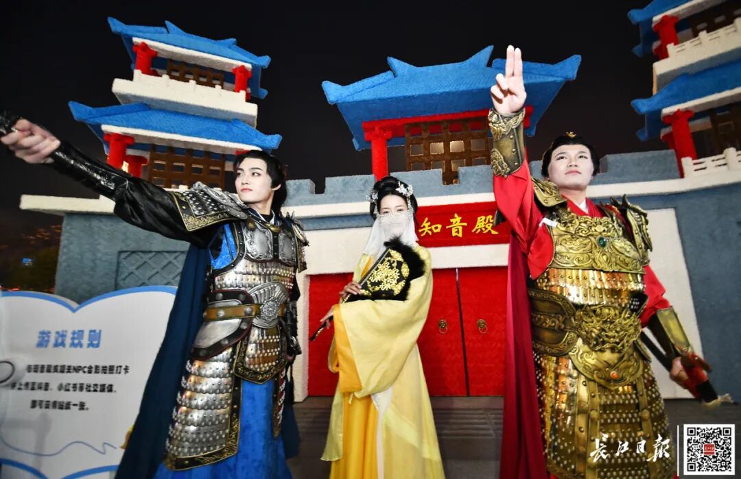 保元里地標(biāo)下,游客們熱鬧玩起火鍋消消樂;黃鶴樓地標(biāo)前,游客與NPC對(duì)詩有來有往;知音號(hào)游輪前,游客與NPC共舞瞬間穿越老漢口風(fēng)情;巴公房子地標(biāo)前則集結(jié)諸多游客創(chuàng)意合影……