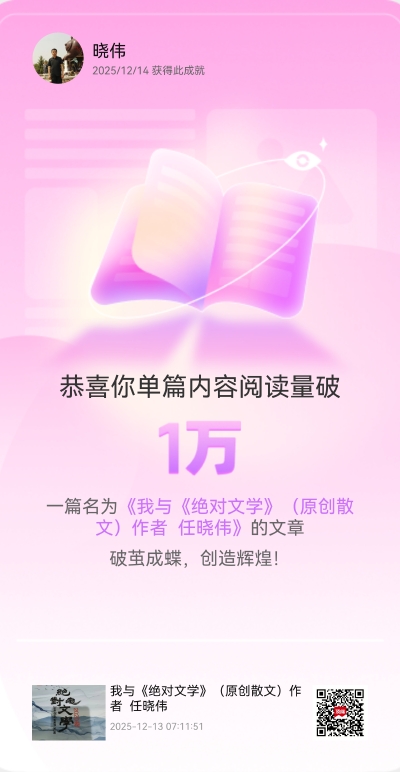 我咬到硬幣,卻聽見硬幣在齒間先笑了——原來路不是闖出來的,是守出來的:守孤獨,守笨拙,守雪夜不肯熄滅的燈?!段业耐鈱O》拿下“洪河杯”一等獎;創作談《于歲月深處,筆耕不輟》獲“明英杯”三等獎;《七律·贊張芳老師》同獲“中華文壇名人名家風采杯”卓越文學獎;《藍月亮》抱走第一屆“中山杯”暨第二屆“明陽杯”聯誼詩賽“最佳人氣獎”……此刻,雪越下越密,像替世界加冕,也像替我把所有掌聲悄悄抹平。晨曦初現,一縷陽光溫柔地拂過臉龐,帶來無盡的溫暖。抽屜里,一疊空白A4紙脆生生作響,像凍土深處春麥的第一聲裂殼。我伸手摸出一張,寫下2026的第一行詩: