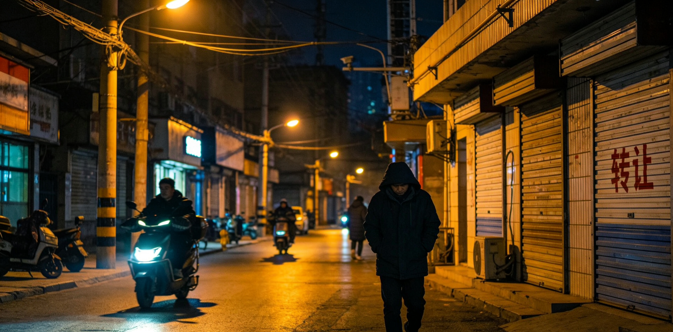 車窗外,城市的夜晚像是褪了色的舊照片。路燈投下昏黃的光暈,將柏油路面照出一層薄薄的暖色,卻無法驅散街角商鋪卷簾門上“轉讓”兩個大字帶來的寒意。電動車從光影間穿梭而過,車輪壓過落葉,發出細微的沙沙聲。行人裹緊外套低頭前行,腳步匆匆,仿佛急著逃離這過于安靜的街道。