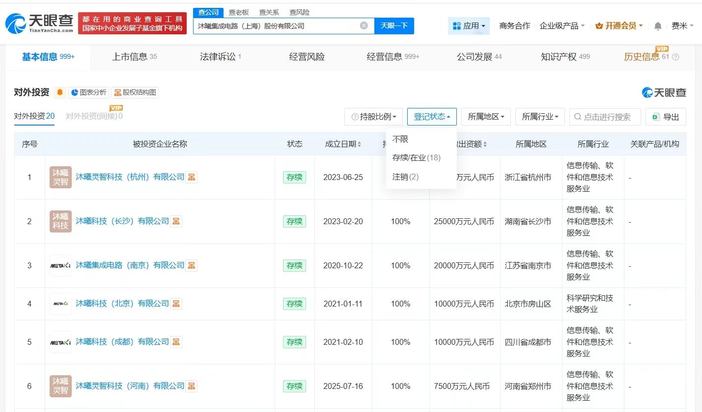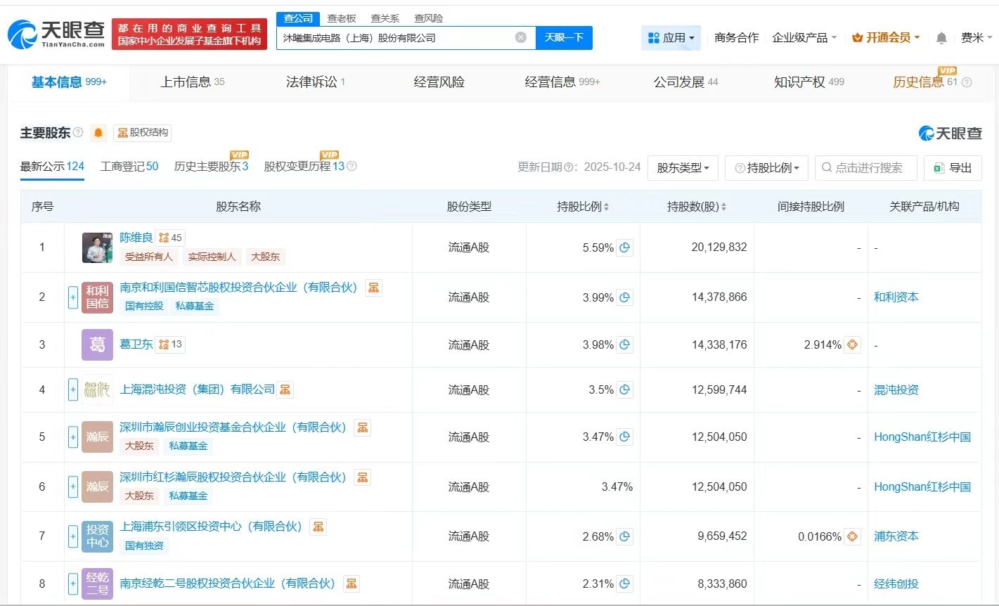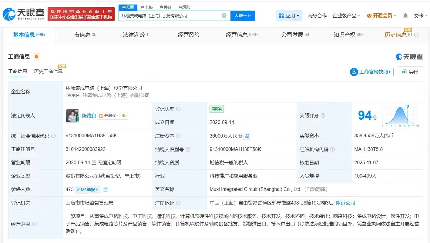天眼查App顯示,沐曦集成電路(上海)股份有限公司成立于2020年9月,法定代表人為陳維良,注冊資本3.6億人民幣,經(jīng)營范圍包括集成電路設(shè)計、軟件開發(fā)、電子產(chǎn)品銷售等,由陳維良、南京和利國信智芯股權(quán)投資合伙企業(yè)(有限合伙)、葛衛(wèi)東等共同持股。對外投資信息顯示,該公司對外投資18家存續(xù)企業(yè),包括沐曦靈智科技(杭州)有限公司、沐曦科技(長沙)有限公司、沐曦集成電路(南京)有限公司等。