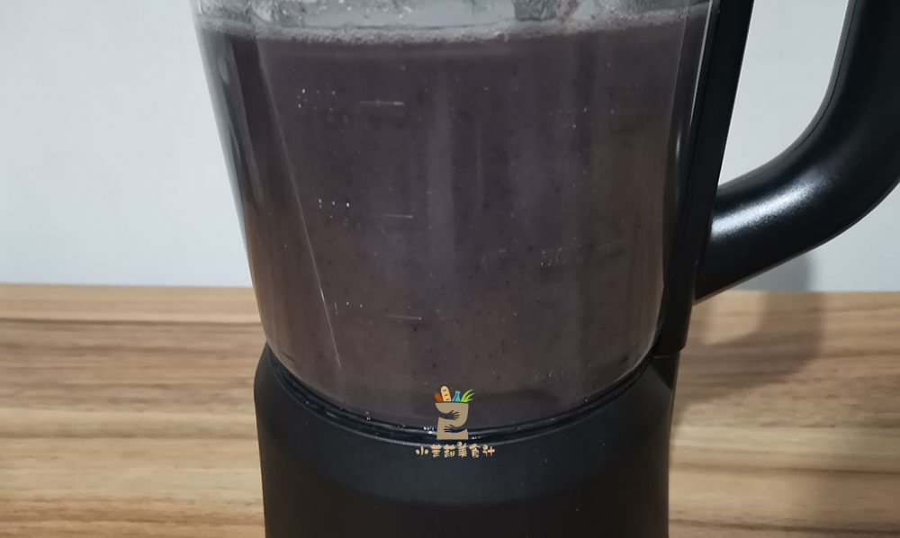 2、所有的食材都放到料理機,棗一定要把核去了,再撒點黑芝麻,清水加到紅色的線之下。