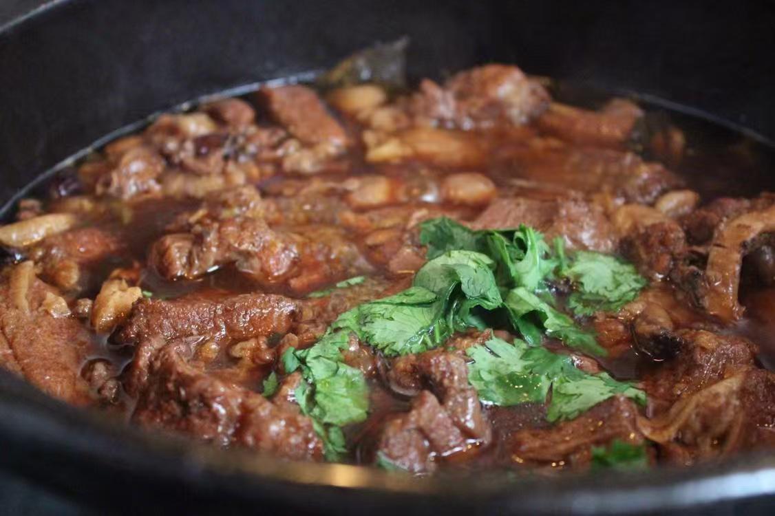 4、兩個小時左右,肉質熟透,加點鹽,再咕嘟十幾分鐘,更好地入味,湯汁也收一收,加把香菜出鍋。