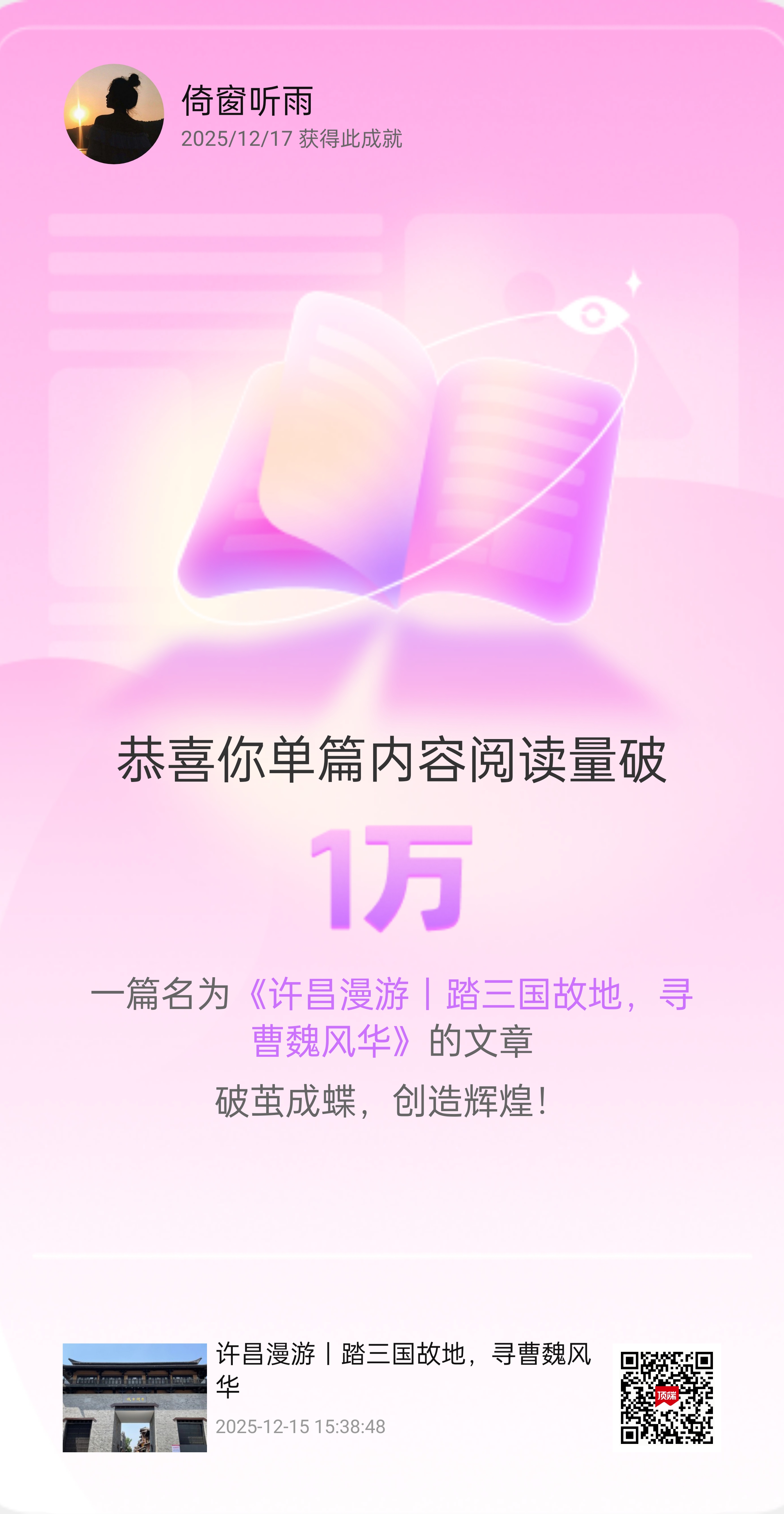 其實寫東西的時候常犯嘀咕:講許昌的曹魏風華會不會太悶?列許昌的美食清單夠不夠貼地氣?是平臺的推薦給了這些文字“被看見”的機會,也是你們的每一次點擊、每一條留言,讓這些關于河南的字,有了落地的溫度。