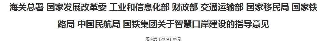 2024年9月,為深入貫徹落實黨中央、國務院關于智慧海關、智能邊境、智享聯通的部署要求,統籌口岸發展和安全,加快口岸數字化轉型和智能化升級,推進智慧口岸建設,服務高水平對外開放和高質量發展,經國務院同意,海關總署等多部門提出智慧口岸建設指導意見。建設目標是依托國際貿易“單一窗口”一體化數字底座,運用先進設施設備和新一代數字技術,建設以口岸設施設備智能化、運行管理數字化、協同監管精準化、綜合服務泛在化、區域合作機制化為主要特征的國際一流現代化口岸。