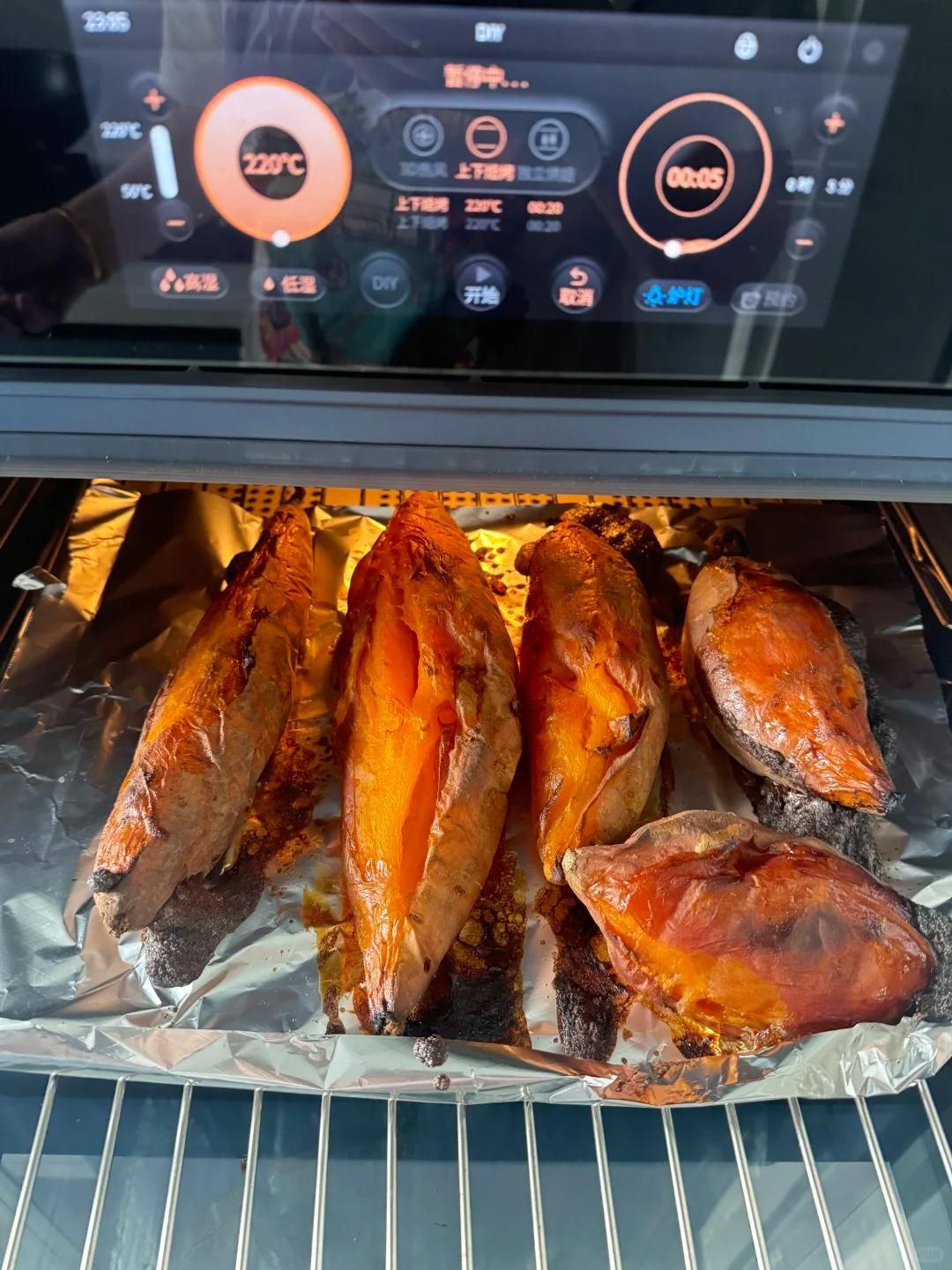 判斷紅薯是否烤熟,用手輕輕按壓,感覺紅薯變軟,捏起來有彈性就可以了。