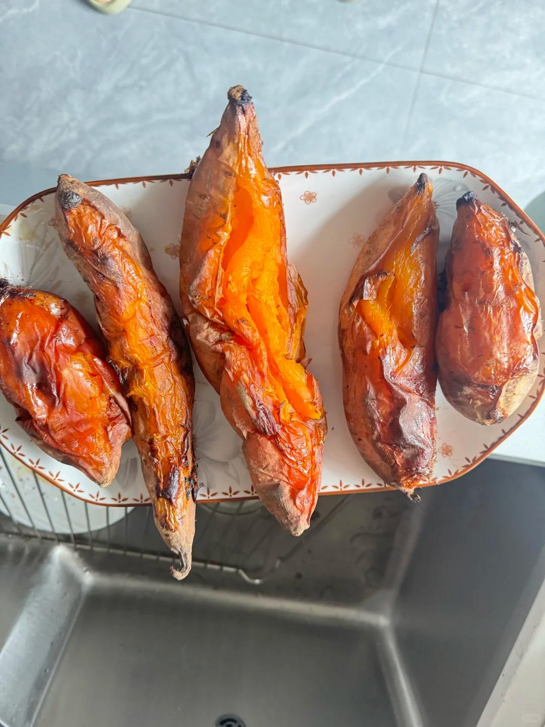 這是最經典也最受歡迎的吃法,外皮焦香,內里軟糯流心。選紅薯要挑表皮光滑、沒有破損的,形狀圓潤的最好,這樣受熱均勻。
