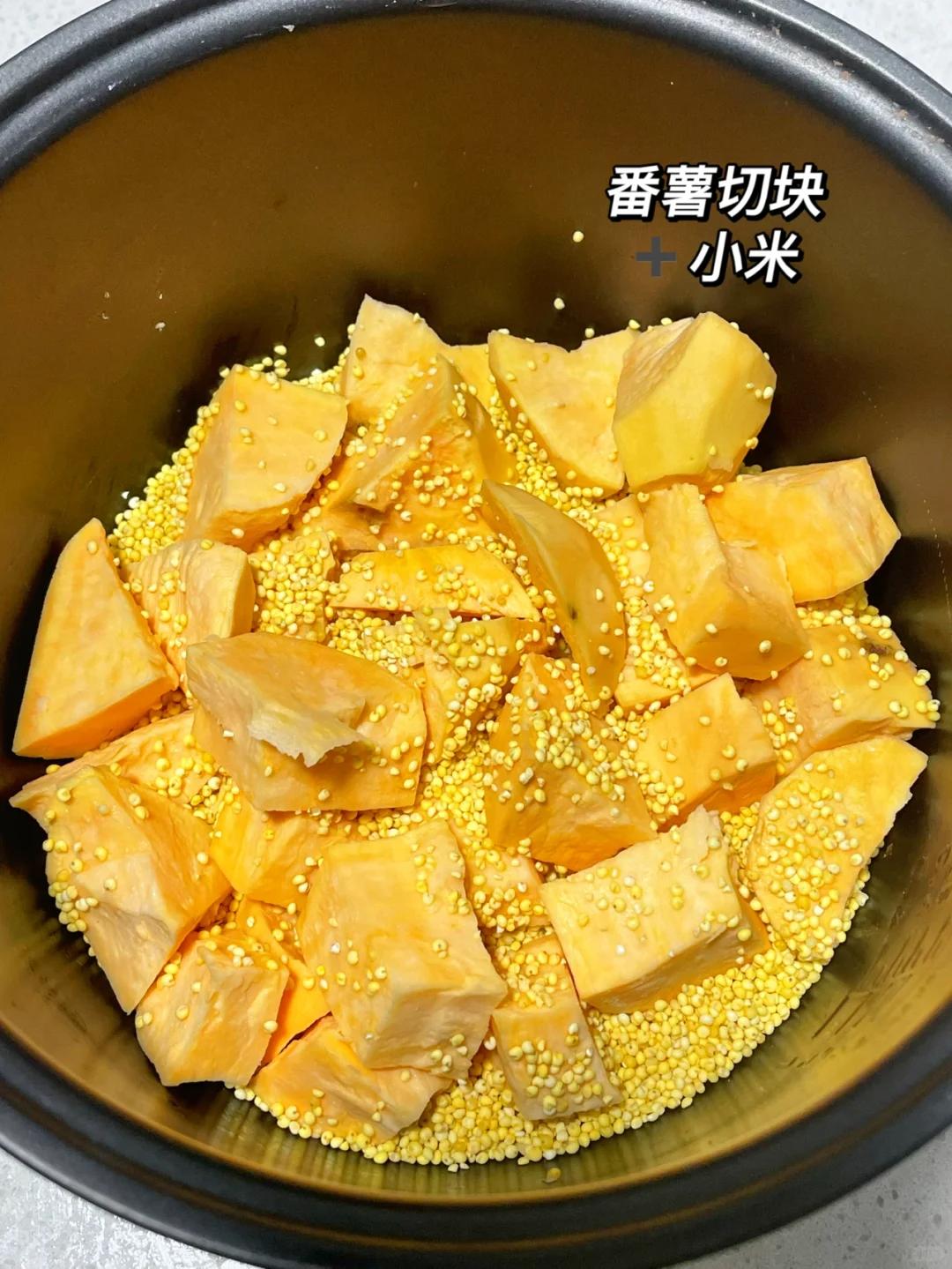 暖身又養胃,冬天的早上喝一碗,舒服又暖胃。選一塊紅薯,去皮后切成小丁,小米提前用清水淘洗干凈,浸泡10分鐘,這樣煮出來的粥更軟糯。