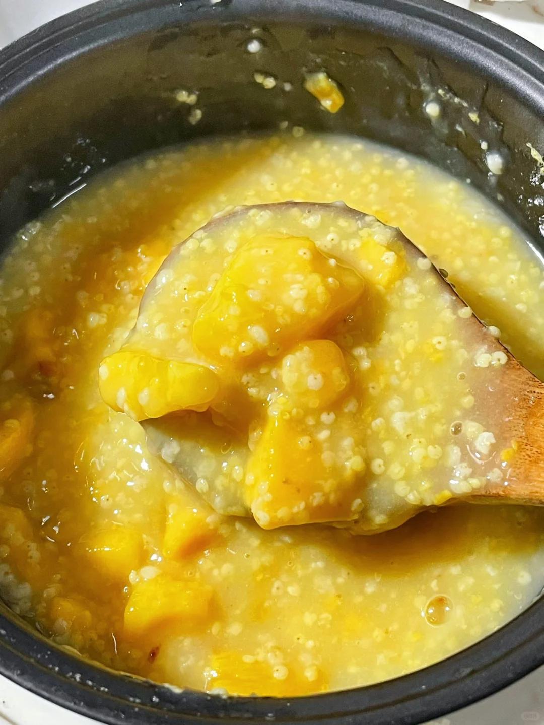 熬煮30分鐘左右,看到小米開花,紅薯丁變得軟爛,粥變得濃稠,就可以了。
