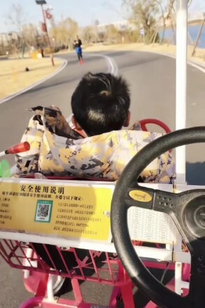 有孩童用指腹試探刻度,