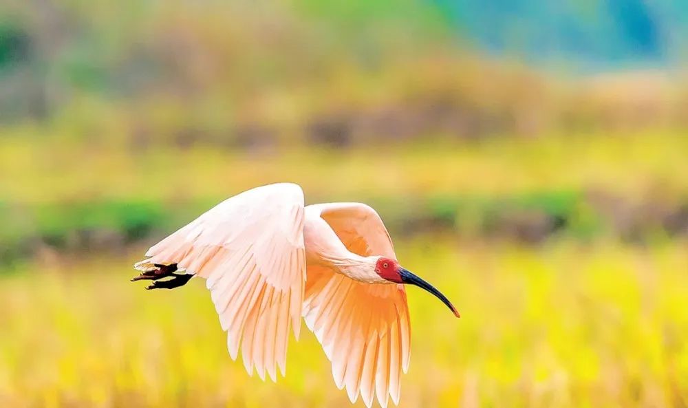 朱鹮的故事,是一部關于重生的史詩。上世紀八十年代,全球僅存七只野生個體,蜷縮在陜西洋縣的秦嶺南麓。而如今,董寨的朱鹮種群已超六百只,子三代鳥兒在野外自由繁衍。當第一縷陽光穿透云層,我看見一只朱鹮振翅飛向藍天,粉紅的羽翼劃過天際,宛如一道流動的彩虹。