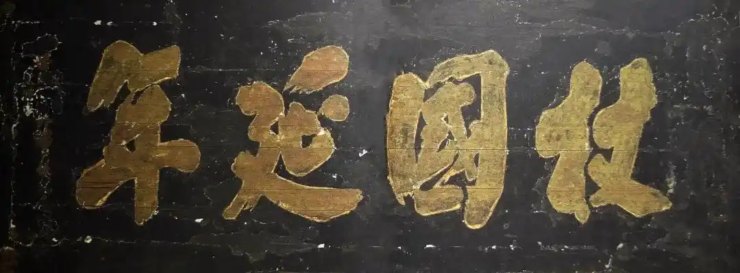 舒同少年時便對書法有很濃的興趣,曾認真臨研過古代碑帖,師法顏真卿、柳公權、王羲之、何紹基等古代書法名家,并注意汲取各家之長,逐漸形成自己的書法風格。年輕時就為家鄉的親臨們書寫匾額對聯之類的東西。他20多歲書寫的書法匾額《杖國延年》(下圖·復制品),全然的顏體風格,敦厚穩重。