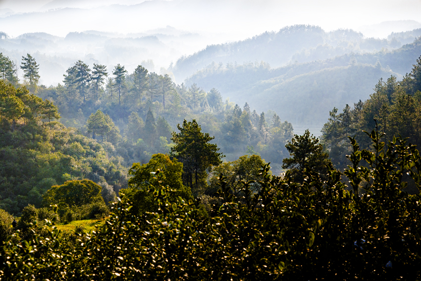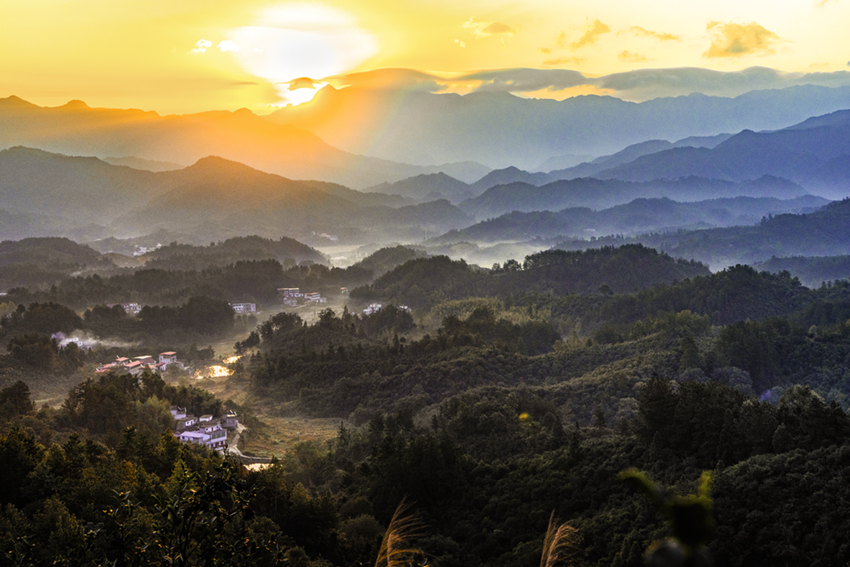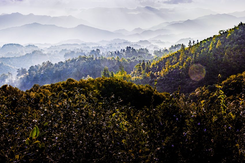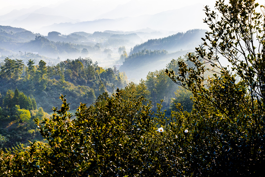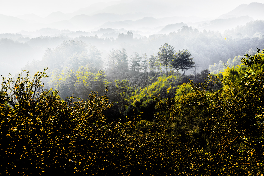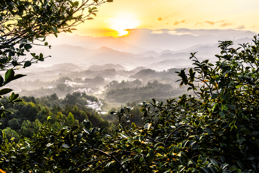 河南省商城縣大別山中的長(zhǎng)竹園鄉(xiāng)有道白沙嶺,嶺上是萬畝油茶生產(chǎn)基地。每天早晨,太陽從東方升起,這里如詩似畫,猶如世外桃源。