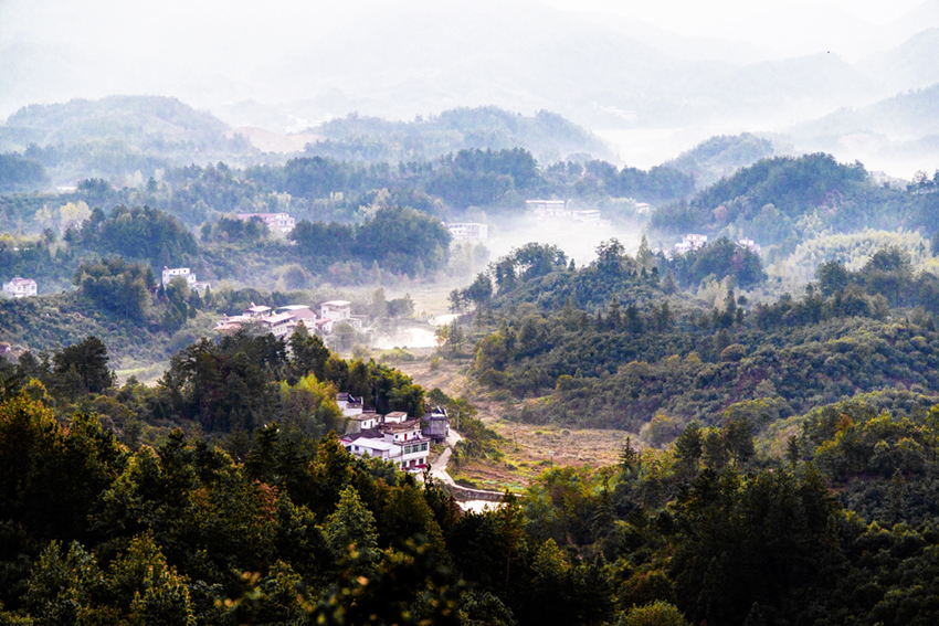 霧漫千山村隱現(xiàn),林深萬壑景清幽。
