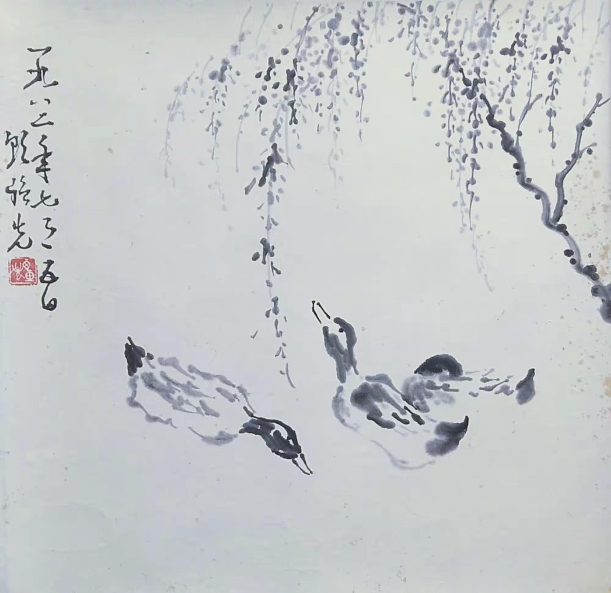 明代畫家董其昌在《畫禪室隨筆》中云:「畫家之妙,全在於養(yǎng)興,蓋興至則神超而意豁?!?強(qiáng)調(diào)畫家應(yīng)培養(yǎng)自身的藝術(shù)興致,當(dāng)興致來臨時(shí),創(chuàng)作便能神思飛揚(yáng),意蘊(yùn)豁達(dá)。顧強(qiáng)先先生的「信筆亂塗」「弄筆破寂」等創(chuàng)作實(shí)踐,正是「養(yǎng)興」的具體體現(xiàn)。先生在「春寒料峭」之時(shí),「小窗無雨,信筆塗畫鴨數(shù)只以遣興」;在硯中有餘墨之時(shí),「棄之可惜,即用以寫鴨一隻」;春日見楊柳抽芽、春燕歸巢,便興之所至作《楊柳春燕圖》,筆墨靈動(dòng),意趣盎然,這種不帶功利目的的創(chuàng)作,正是「養(yǎng)興」的過程。其《餘墨寫鴨圖》,便是硯中餘墨隨手畫就,鴨子造型生動(dòng),墨色淋漓,堪稱自然天成之作。董其昌認(rèn)為,「養(yǎng)興」的關(guān)鍵在於「閒散」,只有心態(tài)閒散,才能與自然之氣相通,創(chuàng)作出自然天成的作品;先生亦主張「自家欣賞自家娛」,不計(jì)較世人之毀譽(yù),這種心態(tài)正是「閒散」的體現(xiàn)。其作品中「信筆亂塗較之刻意求工大有生意」的藝術(shù)效果,正是「興至而作」的自然流露,與董其昌「自然天成」的藝術(shù)追求一脈相承。