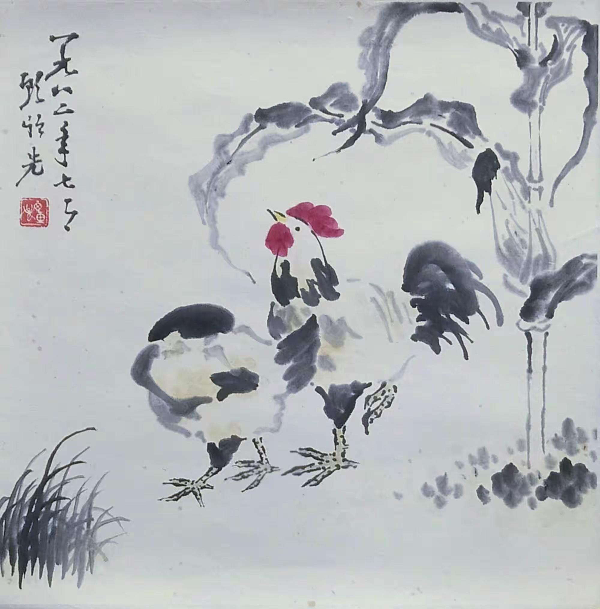 唐代畫家王維提出「外師造化,中得心源」的創(chuàng)作理念,強(qiáng)調(diào)繪畫既要以自然為師,又要融入畫家的主觀感悟。顧強(qiáng)先先生的「形意合一」主張,正是對(duì)這一理念的繼承與發(fā)展。先生認(rèn)為「形為意之外在表現(xiàn),意為形之內(nèi)在特質(zhì)」,這裡的「意」既包含物象的內(nèi)在精神,也包含畫家的主觀情意。王維主張畫家應(yīng)「觀物取象,得意忘形」,顧強(qiáng)先先生則主張「既取其意,又不忘其形,庶可兩全」,認(rèn)為真正的藝術(shù)境界並非捨形取意,而是形與意的有機(jī)統(tǒng)一。如他題畫句「母雞本是尋常物,畫入毫楮別有情」,這裡的「情」便是畫家的主觀感悟,而《農(nóng)家雞趣圖》中「母雞」的形態(tài)則是傳達(dá)這份「情」的載體,正是「外師造化,中得心源」的生動(dòng)體現(xiàn)——以造化之形,載心源之意,最終達(dá)到「形意合一」的境界。