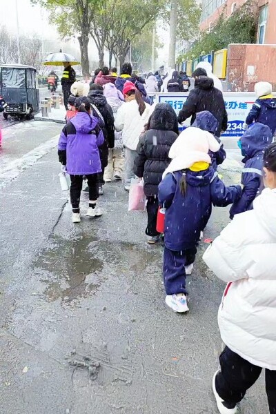 鄭州的雪景:踏雪而行,開開心心上學(xué)的孩子們!