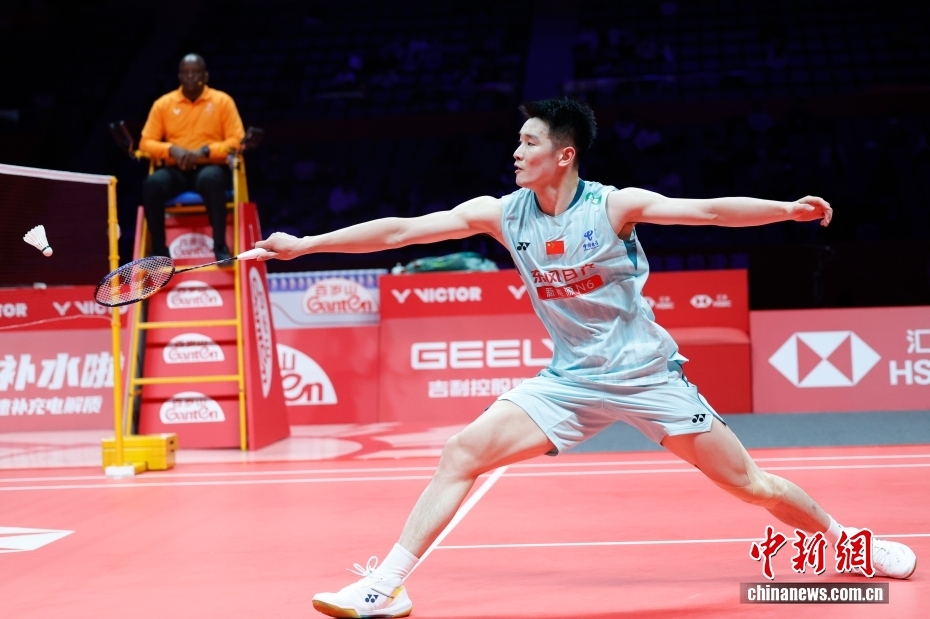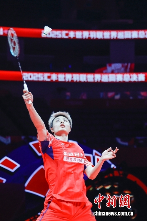 12月17日,2025年世界羽聯世界巡回賽總決賽在浙江杭州舉行。在首日進行的男單小組賽B組比賽中,中國選手石宇奇2:0戰勝隊友李詩灃。圖為李詩灃在比賽中接球。