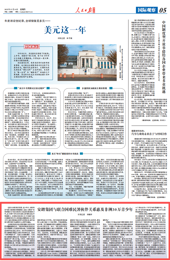 12月18日,人民日報海外版國際觀察版刊發題為《安踏集團與聯合國難民署伙伴關系惠及非洲30萬青少年》報道。近年來,安踏集團終致力于用體育的力量回饋社會,公司的國際人道主義援助結合共建“一帶一路”倡議,把來自中國的友誼關愛傳遞到更遠的地方。