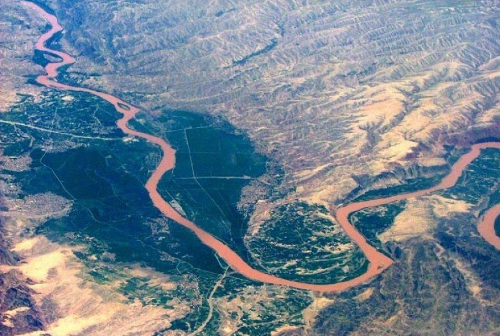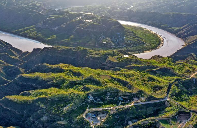 “乾坤灣”是黃河最溫柔的圖畫,河水繞著山巒和峽谷,
