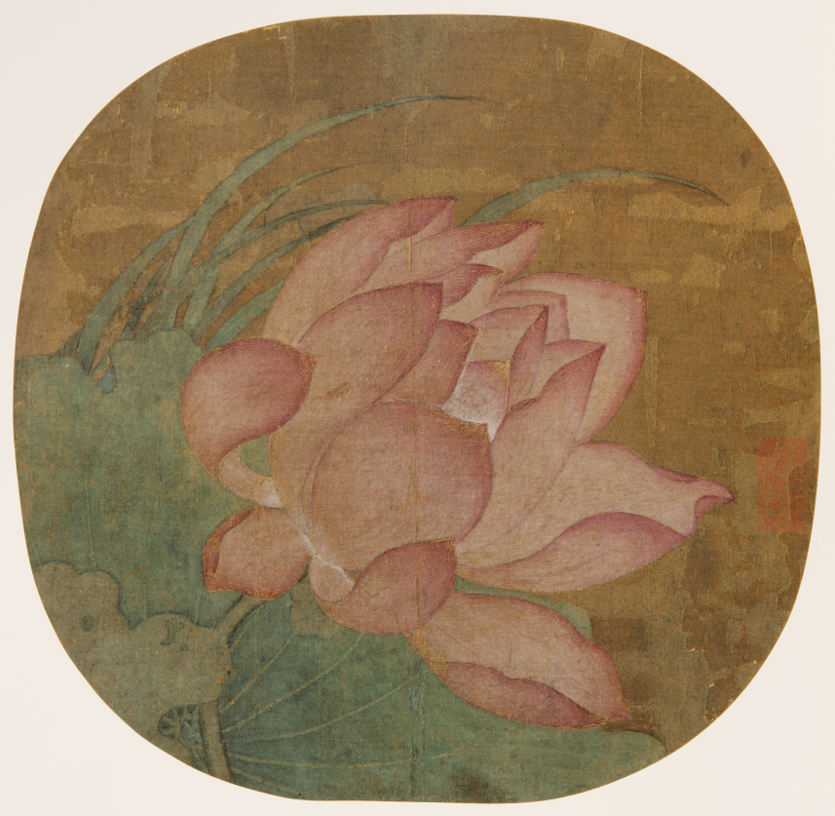 《荷花圖》則采用獨特的側面視角,描繪了“風過渚荷動,芙蓉香滿池”的情景。兩幅荷花圖皆為淡彩雙勾,工筆渲染,敷色淳雅,用筆精微。南宋院體畫承襲北宋傳統,既保持了畫院花鳥畫狀物精微的寫實精神,又體現出畫家蘊藉空靈的審美意趣,實現了畫技、畫意的融合與統一。