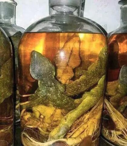 首長看出我的迷惑,告訴這是用酒浸泡蛤蚧。并說這蛤蚧來自邊地山區,是很珍貴的一種藥材。蛤蚧活捉后用酒浸死,不多久就呈現出淡淡的綠色,便可飲服了。蛤蚧酒既滋補身體,又主治哮喘虛勞,是待客的佳釀。說完,他從瓶中斟出一杯,讓我嘗嘗。可惜我當時身體健壯如牛,又無氣喘咳嗽,更主要的是厭惡蛤蚧的尊容,面對酒杯躊躇再三,還是沒敢入口。