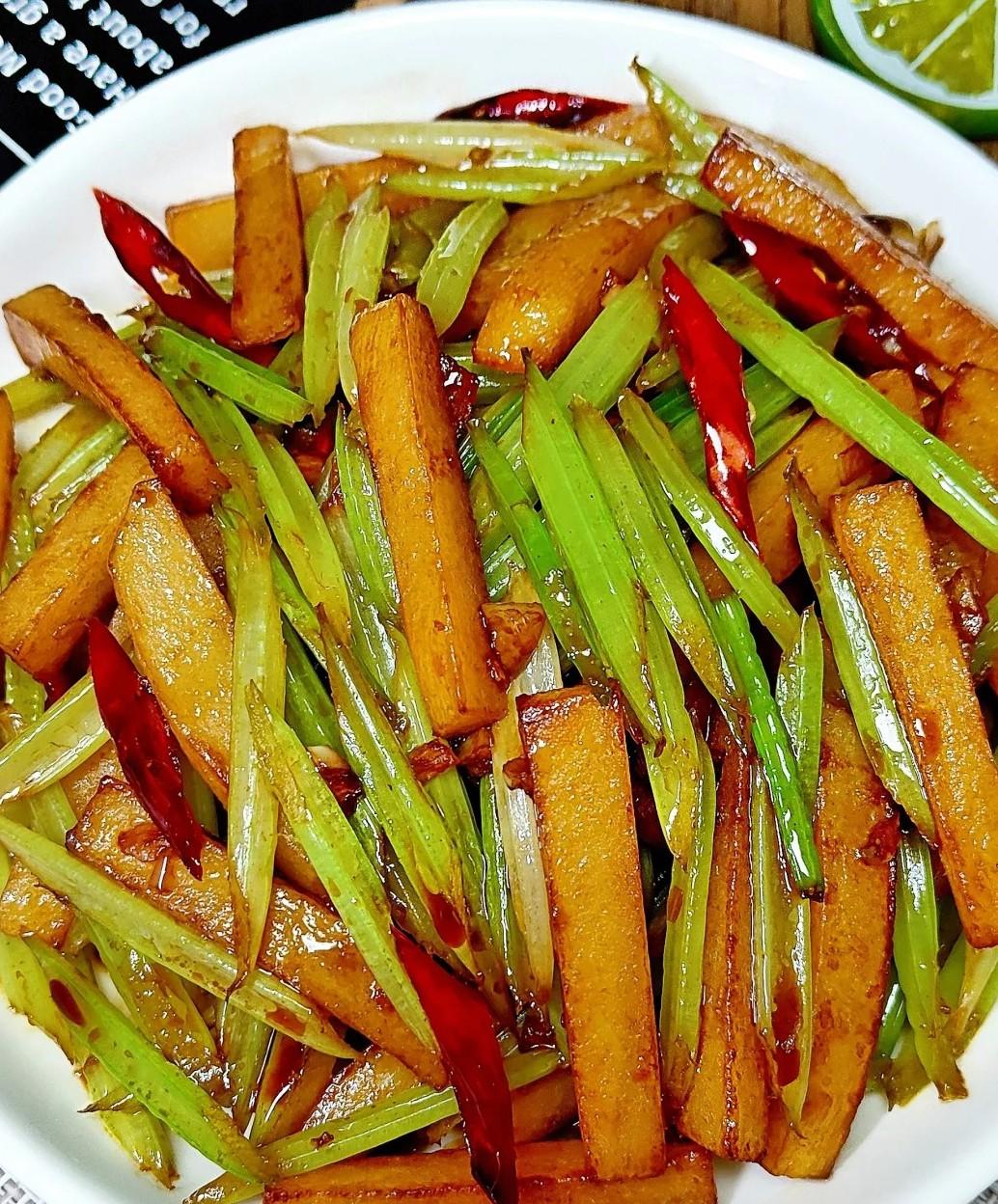 還有一道芹菜炒土豆條,聽著普通,但炒對了真下飯。土豆切條泡水,把粉洗掉,炒的時(shí)候不粘鍋。油熱后先煎土豆,別心急翻動,等它自己結(jié)一層金黃外皮,再撥散。這時(shí)候鍋里的油是香的。倒出來,留點(diǎn)底油炸幾?;ń?,香味出來就把花椒撈走,再來點(diǎn)蒜末、干辣椒,火要大,下芹菜“嘩”地一炒,翠綠翠綠的。再把煎好的土豆倒回去,撒點(diǎn)鹽,一點(diǎn)點(diǎn)糖,最后滴三五滴香醋,蓋上鍋蓋燜兩秒,醋香一激,整道菜活了。