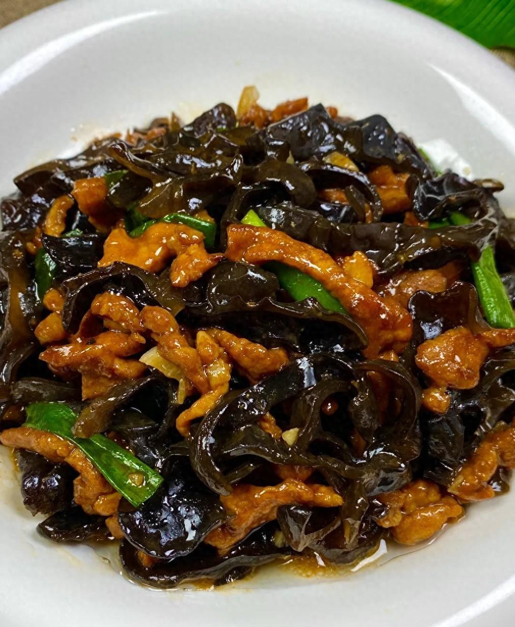 最常吃的是木耳炒肉絲。黑木耳必須涼水泡,泡兩三個(gè)鐘頭,口感才脆。熱水泡出來的軟趴趴,嚼著沒勁。泡好撕小朵,肉絲用料酒、生抽、胡椒粉抓一抓,再拌點(diǎn)油,滑炒不易老。先炒肉絲變色就盛出,爆香姜蒜,下木耳猛炒,沿著鍋邊淋半碗水,鍋氣“刺啦”騰上來,味道全鎖進(jìn)去了。最后回肉絲,撒上青蒜段,端上桌還冒熱氣。