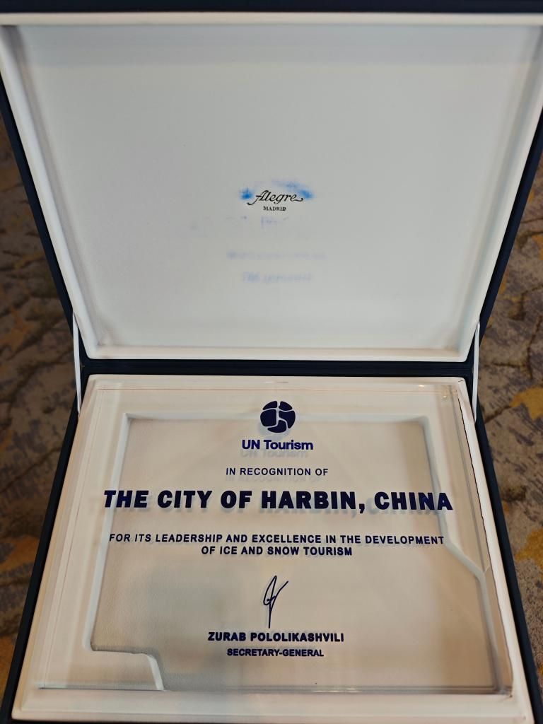 聯合國旅游組織授予哈爾濱“世界冰雪旅游卓越城市”稱號。(哈爾濱市委宣傳部供圖)