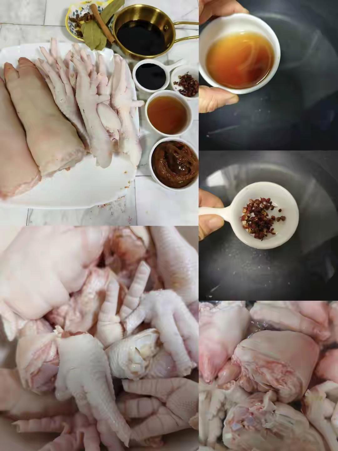 1. 豬蹄和雞爪洗凈,都先冷水下鍋焯水備用。
