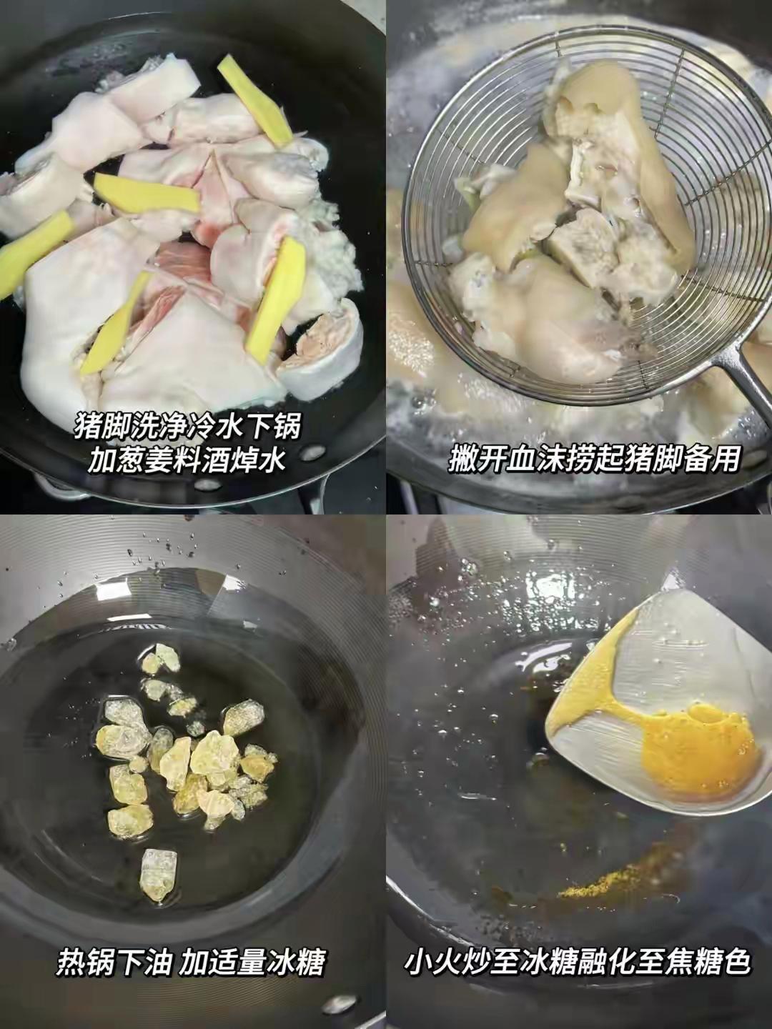 1. 豬蹄焯水洗凈,放入電飯煲內膽。