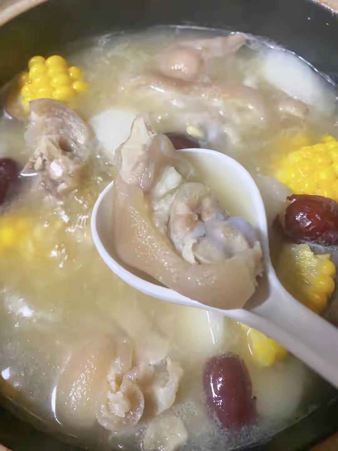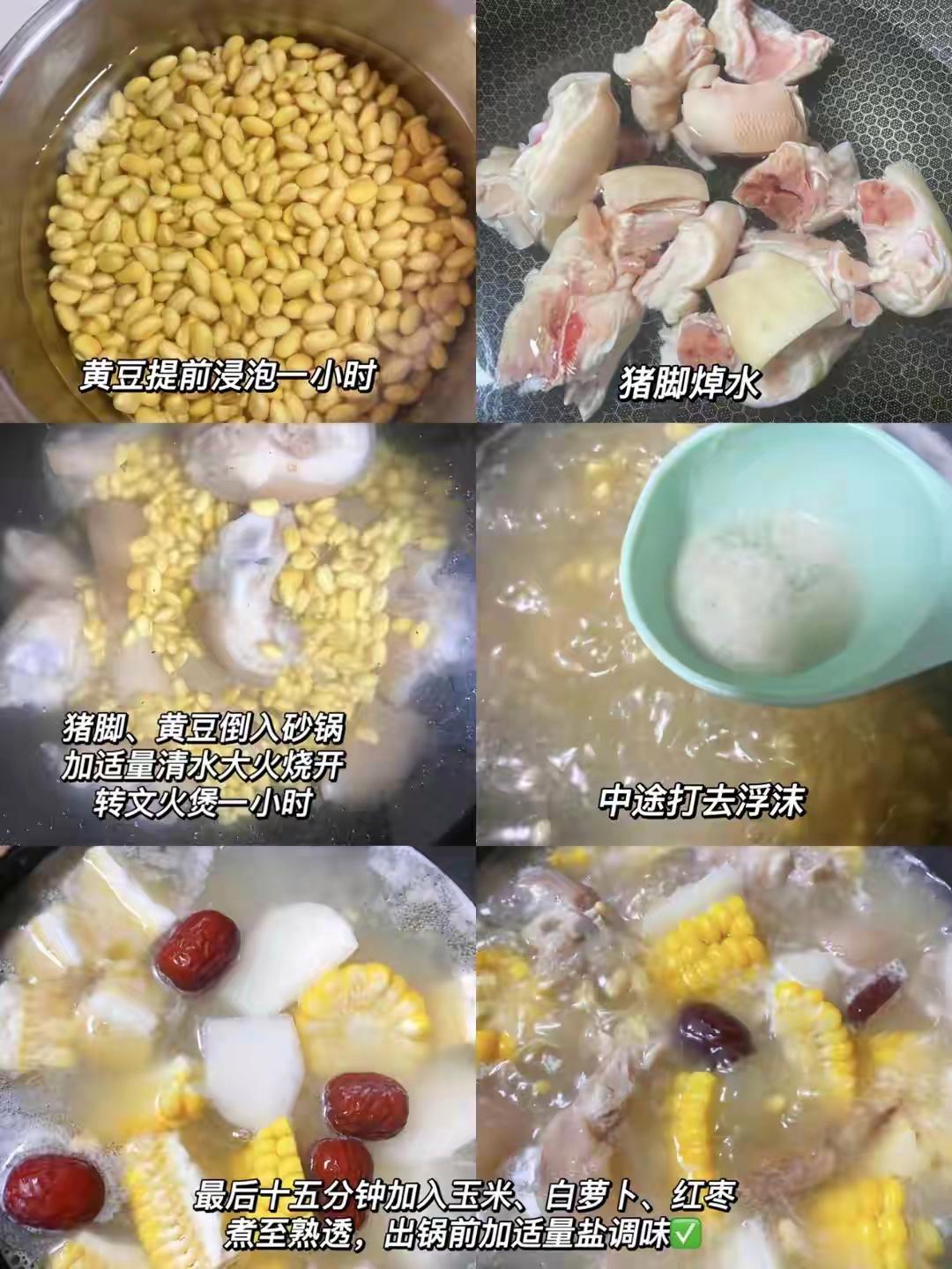 二、黃豆豬蹄湯(湯色奶白,滋補潤燥)