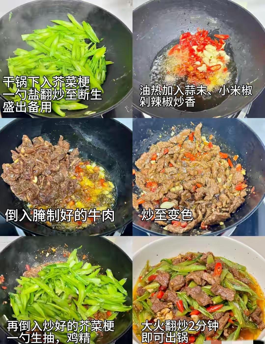 關鍵: 菜梗菜葉分開下鍋,口感才好;牛肉快炒才嫩,別老。
