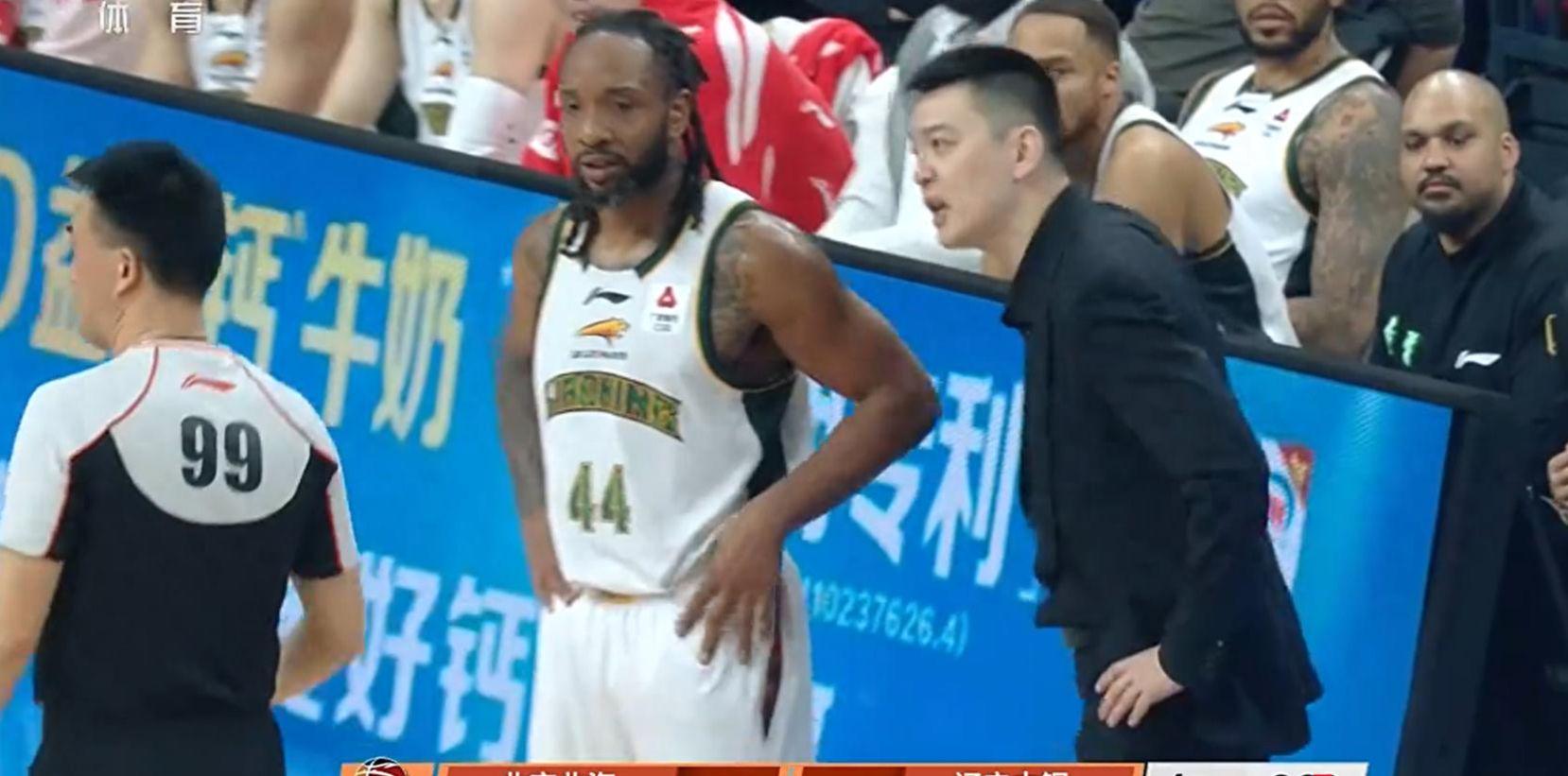 主教練楊鳴對裁判判罰嚴重不滿,激烈理論,怒噴裁判,領到了技術犯規。吃到第一個T后,楊鳴還是喋喋不休,不斷地抱怨裁判,再次領到一次技術犯規,累計兩個技術犯規遭到驅逐出場。