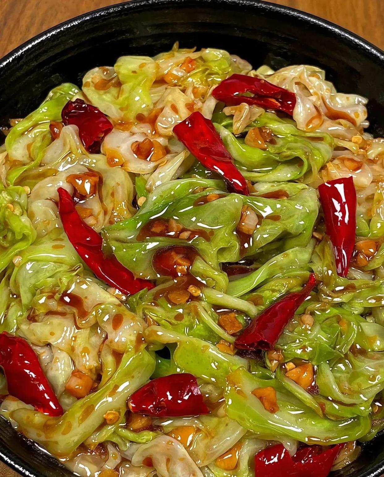 手撕包菜,聽名字就接地氣,做法超簡單:挑個新鮮包菜,撕成大片;熱鍋涼油,爆香蒜末和干辣椒,“滋啦”一聲,香味直沖腦門;倒入包菜,大火快炒,加點生抽、醋和糖,兩分鐘出鍋。金黃帶焦邊,入口爽脆,微辣帶甜,配米飯絕了