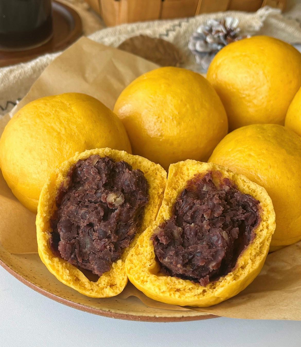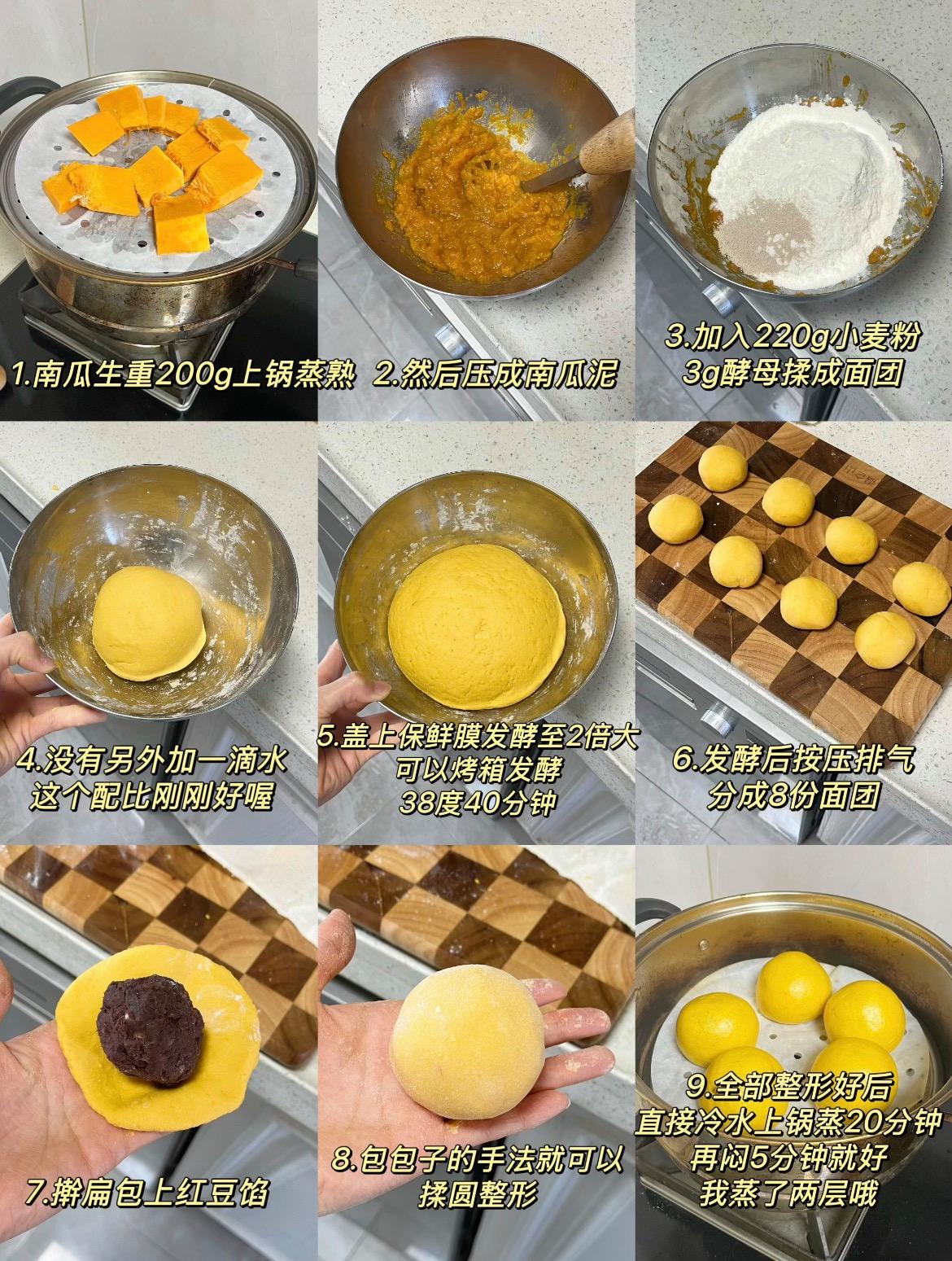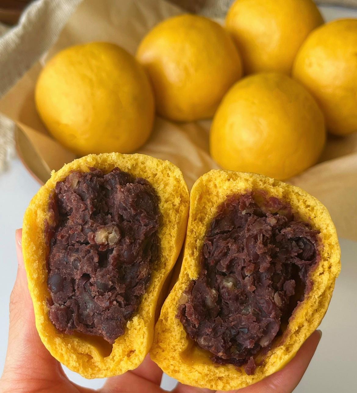 南瓜 200克、普通中筋面粉 220克、干酵母 3克、紅豆餡 適量(可買現成的或自制)