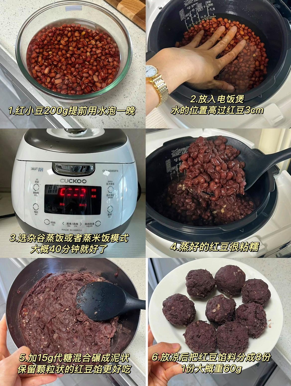 1、根據圖中教程制作紅豆餡(如果嫌麻煩也可以買現成的),南瓜切塊,上鍋蒸熟至軟爛。取出后壓成細膩的南瓜泥,徹底放涼備用。