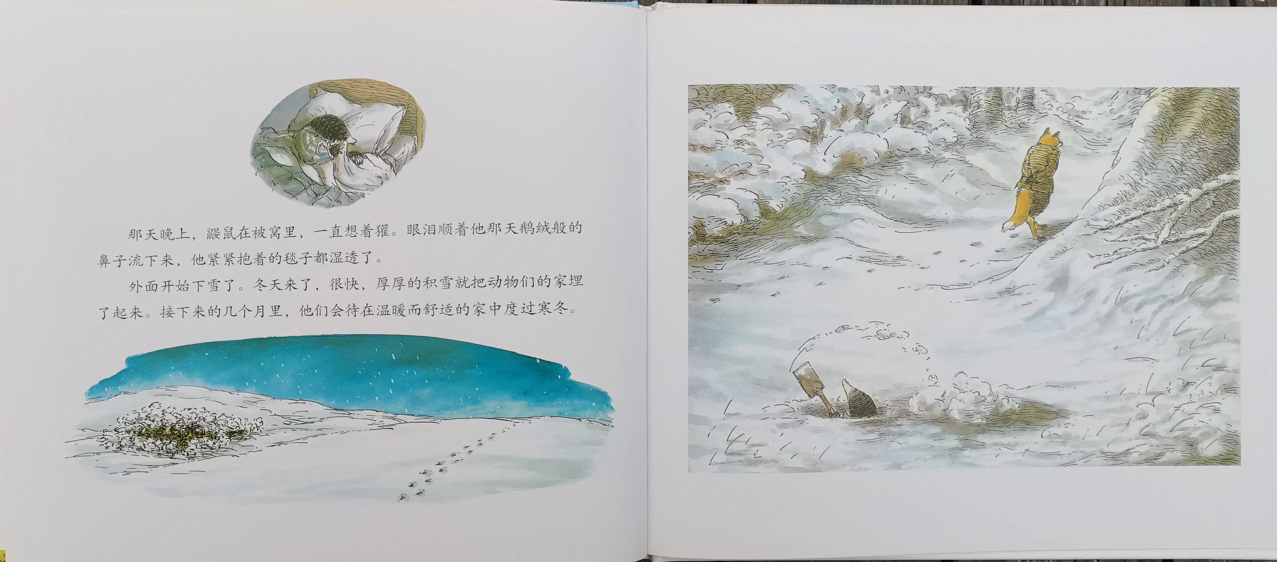 很多家長將 “死亡” 視為洪水猛獸,習慣用謊言或回避來應對孩子的提問,卻忽略了孩子的認知邏輯:他們無法理解 “永恒的離別”,卻能感知 “失去的痛苦”;他們不懂 “生命的終結”,卻會因 “再也見不到” 而陷入焦慮。馬丁?布伯在《我與你》中寫道:“教育的本質是心靈的相遇,當孩子直面失去時,家長的回避本質上是心靈的疏離,會讓孩子覺得痛苦是不被允許的,失去是無法言說的。” 《獾的禮物》里,獾在冬天來臨前平靜離世,森林里的動物們沒有陷入無盡的悲傷,而是一遍遍回憶獾留下的 “禮物”—— 教會河鼠剪紙、教會狐貍系領帶、教會兔子烤姜餅、教會刺猬滑雪。繪本沒有回避獾的死亡,卻用 “禮物” 的隱喻,讓死亡從 “可怕的終結” 變成 “溫暖的延續”,這正是給孩子詮釋死亡的最佳方式:死亡不是消失,而是換一種方式存在,那些留下的愛、技能與回憶,就是生命最珍貴的禮物。