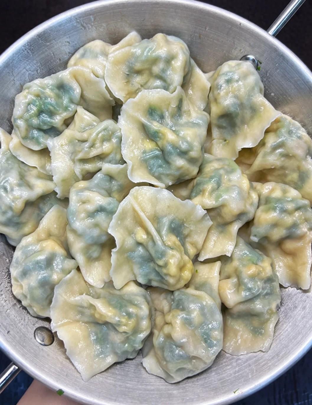 咬一口。先是面皮的麥香。接著,薺菜獨特的清香在嘴里漾開。混合著雞蛋的軟嫩。味道干凈,像把春天包進了冬天。