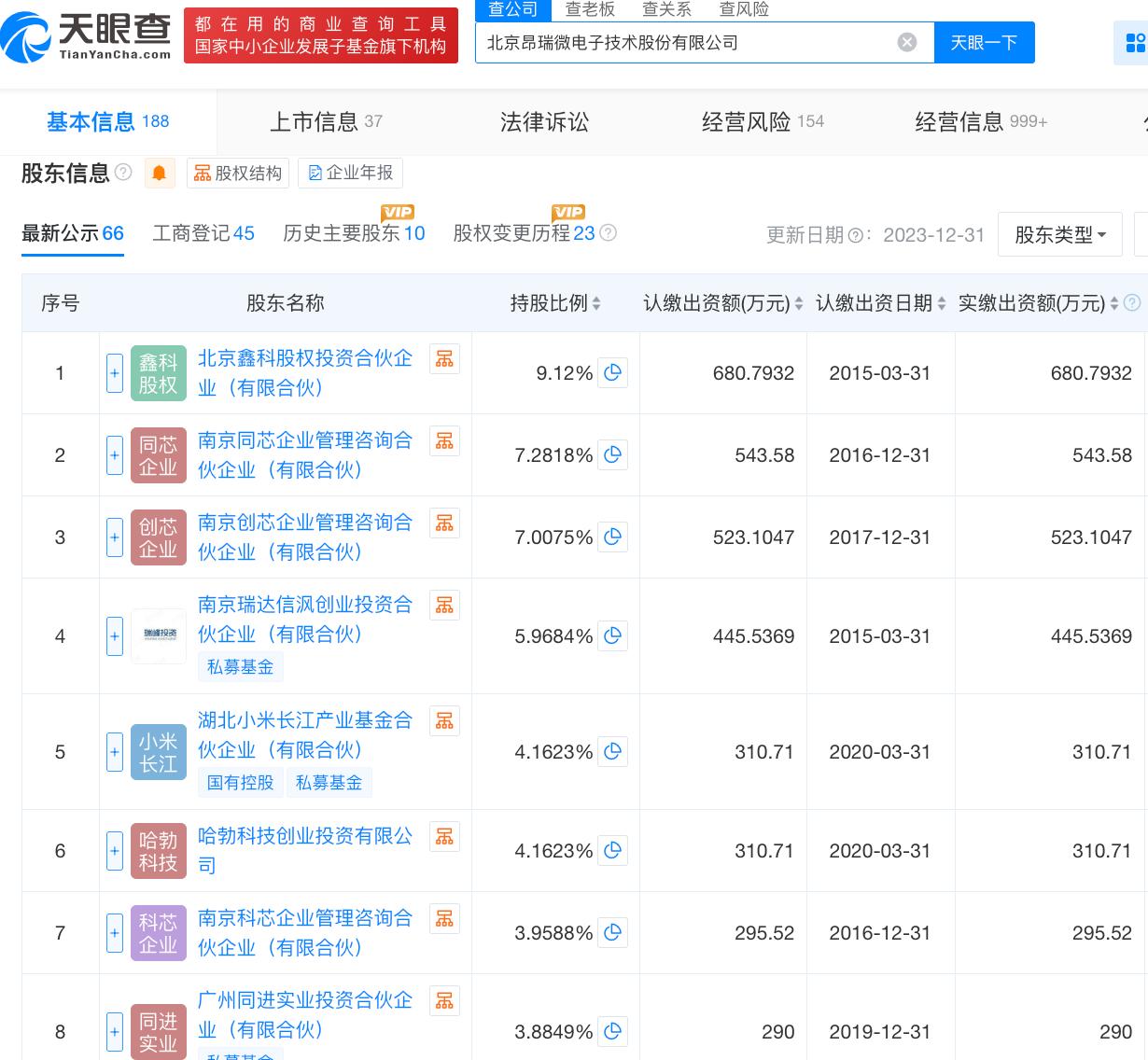 天眼查App信息顯示,昂瑞微成立于2012年7月,前身為北京中科漢天下電子技術(shù)有限公司(即“北京漢天下”)。目前,該公司的注冊(cè)資本為7464.8766萬(wàn)元,法定代表人為錢(qián)永學(xué),主要股東包括北京鑫科股權(quán)投資合伙企業(yè)(有限合伙)(下稱(chēng)“北京鑫科”)等。