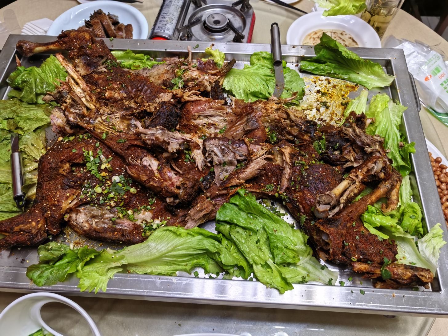 這首短詩以烤全羊?yàn)橛黧w,將個(gè)體生命的宿命與群體的浮沉并置,寥寥數(shù)語便織就出一層冷峻的哲思。“被時(shí)間烤熟的羊”,以“時(shí)間”替代炭火,消解了具象的烹飪動(dòng)作,讓“烤熟”成為一種不可逆的、裹挾著所有生命的進(jìn)程——羊難逃肢解吞噬的結(jié)局,恰如人群里那些哭過、笑過、愛過、恨過的人,在時(shí)光洪流中終究要褪去個(gè)體的棱角,歸于塵埃。