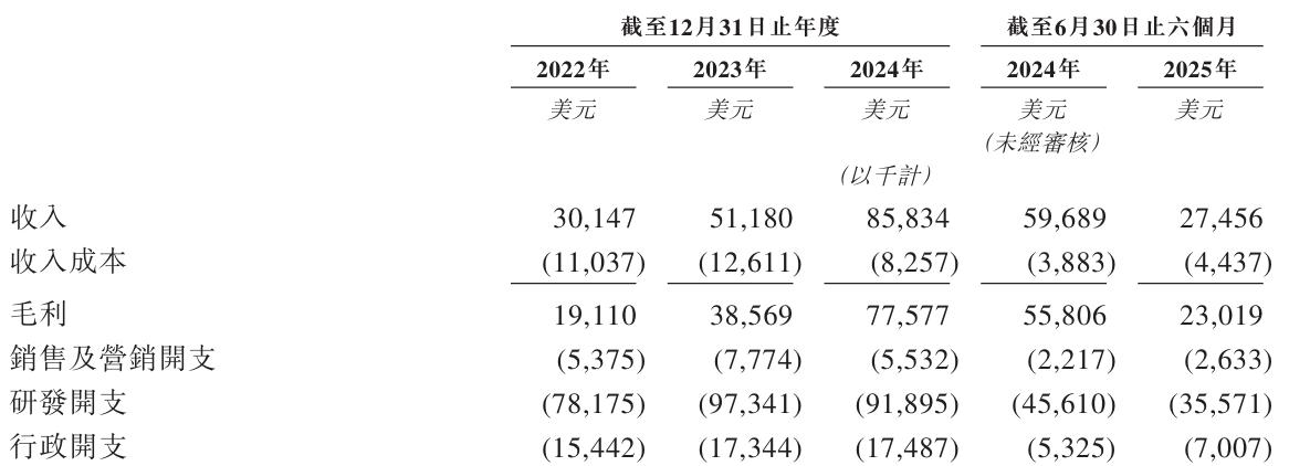 正因如此,英矽智能無法保證或明確預測其收入的產生情況。該公司2022年至2024年分別實現收入3014.7萬美元、5118.0萬美元和8583.4萬美元,凈虧損分別為2.22億美元、2.12億美元和1709.6萬美元,整體呈向好發展態勢。