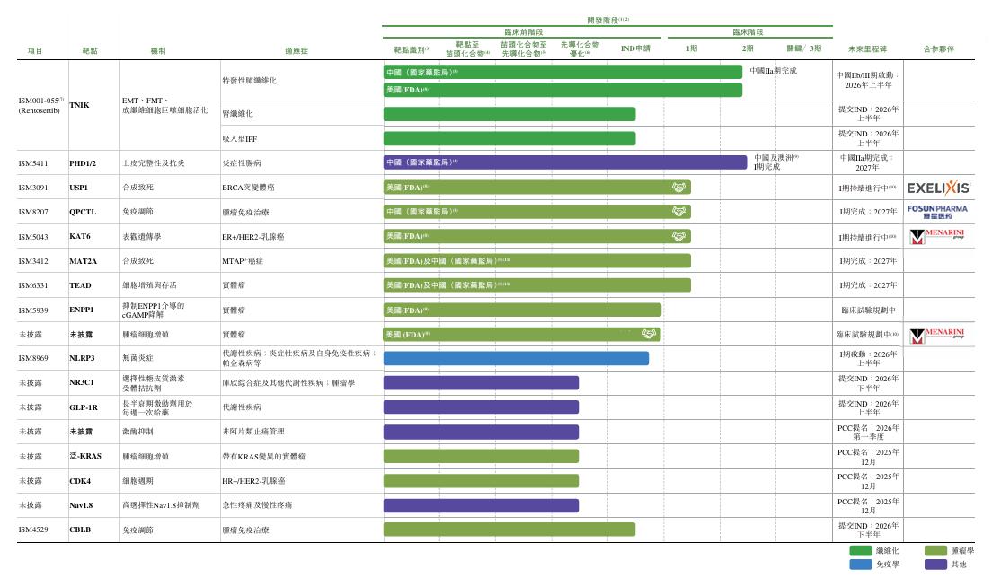 目前,英矽智能通過Pharma.AI產生逾20項臨床或IND階段資產,其中3項已授權予國際制藥及醫療保健公司,總價值超20億美元,包括約1.1億美元的預付款項和約19億美元的里程碑付款,以及一項處于自主開發階段的II期資產。