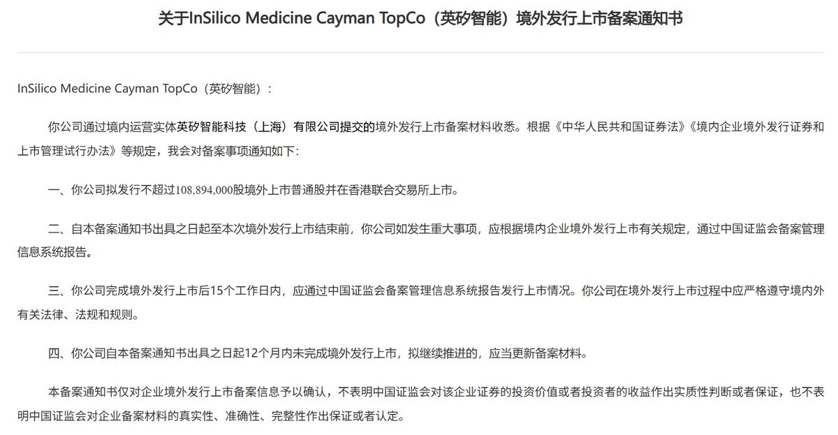近日,InSilico Medicine Cayman TopCo英矽智能(下稱“英矽智能”)通過港交所聆訊,并披露了聆訊后的資料集(招股書),摩根士丹利、中金公司、廣發證券(香港)為其聯席保薦人。