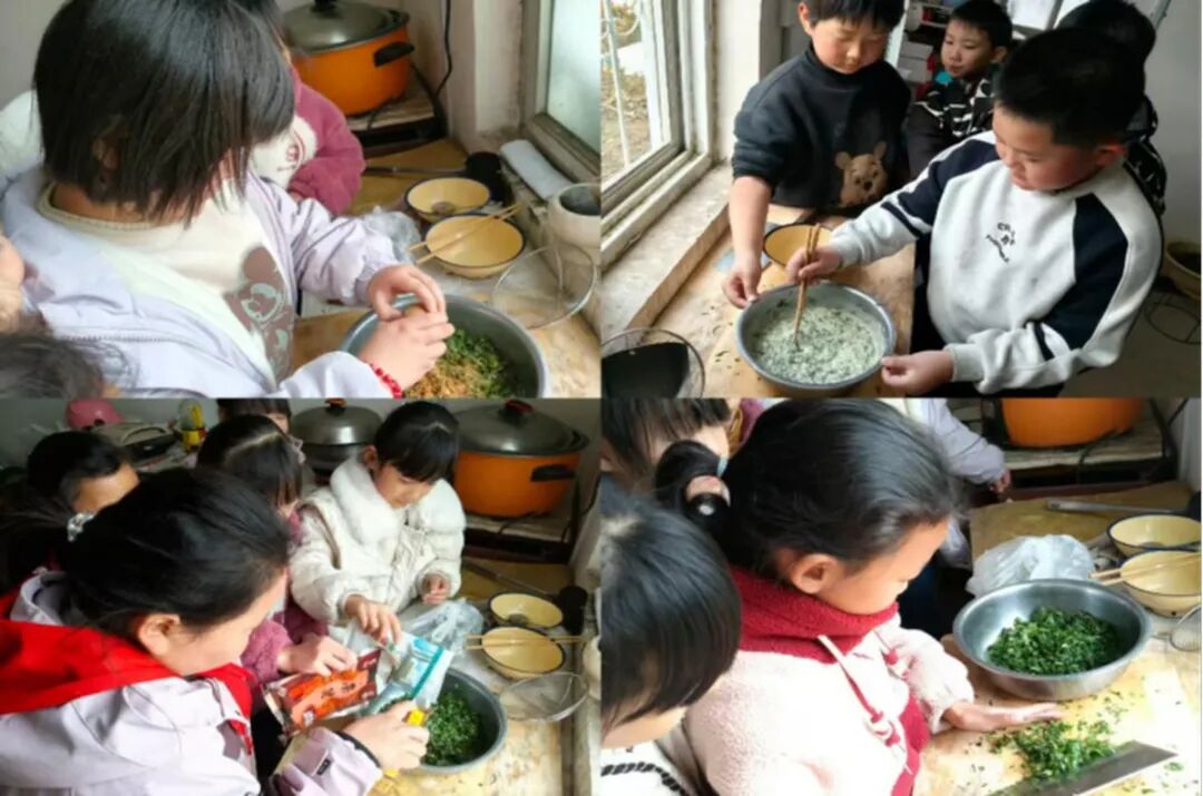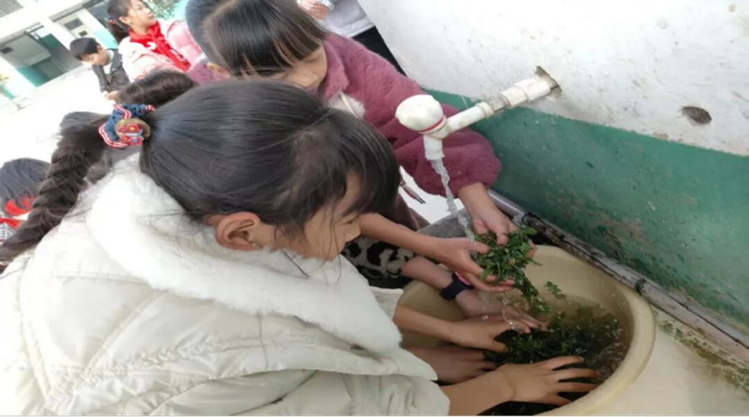 擇好的薺菜被端到水龍頭下,孩子們輪流上陣清洗。有的小手捧著薺菜輕輕揉搓,有的用手指順著菜葉細細捋洗,清涼的自來水沖刷著殘留的泥土,薺菜在水盆里浮浮沉沉,漸漸變得水靈靈、綠油油,愈發惹人喜愛。“老師,快看,我洗的薺菜干干凈凈,沒有一點泥啦!”姚嘉賀同學舉著濕漉漉的薺菜邀功,水珠順著他的袖口往下滴,他卻笑得眼睛都瞇成了一條縫。