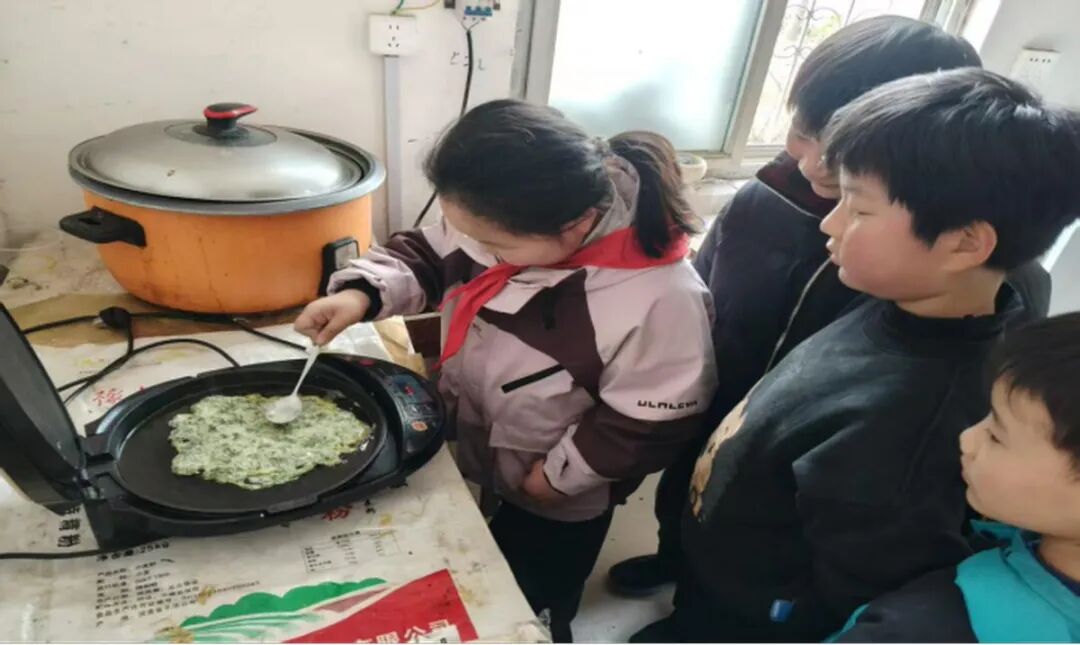 “這煎餅之所以這么好吃,是因為里面藏著你們親手挖的薺菜、認真攪拌的面糊,還有付出的汗水呀!”孫老師微笑著說道。孩子們似懂非懂地點點頭,小臉上滿是藏不住的自豪,眼神里閃爍著對勞動的熱愛與喜悅。