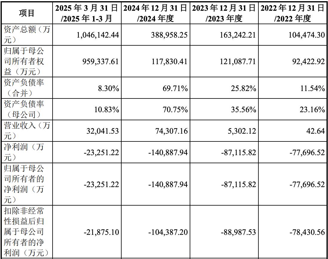 2022年、2023年和2024年度以及2025年第一季度,沐曦股份的營收分別約為42.64萬元、5302.12萬元、7.43億元和3.20億元,凈虧損分別約7.77億元、8.71億元、14.09億元和-2.33億元,扣非后凈利潤分別約-7.84億元、-8.90億元、-10.44億元和-2.19億元。
