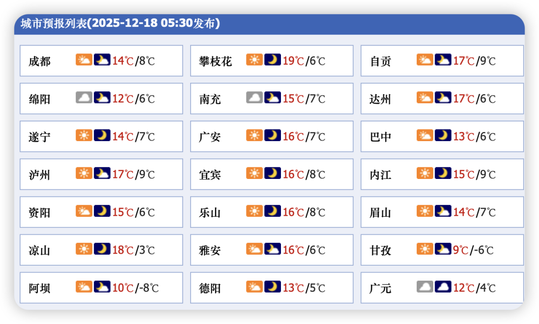 大家好!今天是12月18日,星期四,歡迎進入早讀四川!每天2分鐘,讓你更懂四川。