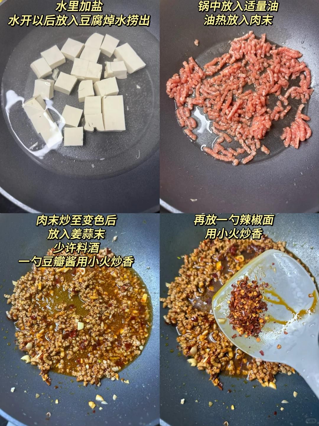 豆腐的軟嫩配上麻辣的醬汁,每一口都讓人上頭。選質(zhì)地緊實(shí)的老豆腐,切成2厘米見方的小塊,放進(jìn)加了鹽的沸水里焯燙兩分鐘,撈出瀝干水分,這樣豆腐不容易碎,還能去豆腥味。