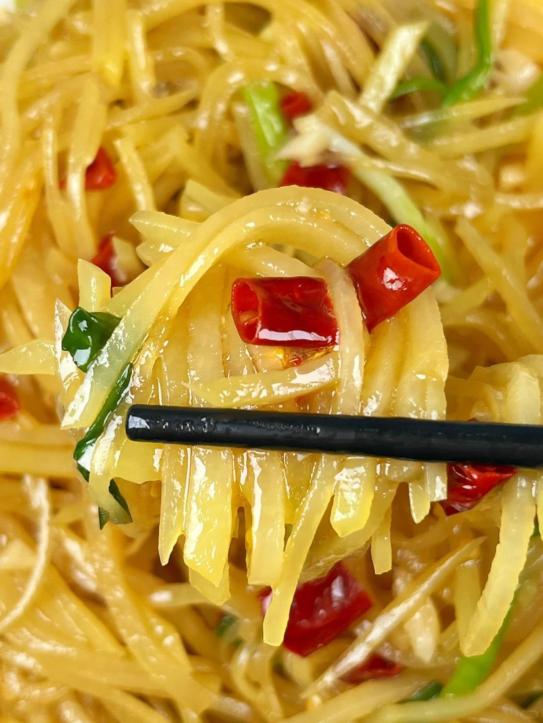 土豆絲脆爽可口,酸辣的滋味特別開胃,簡單的食材卻做出了最動(dòng)人的味道,沒胃口的時(shí)候炒一盤,配著米飯能輕松吃下一整碗。